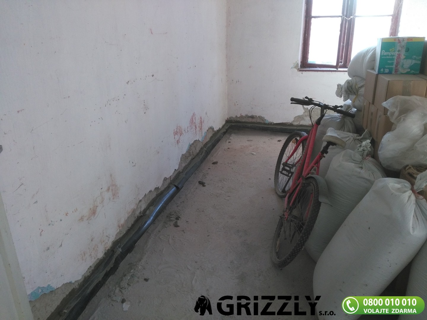 Podrezanie muriva rodinného domu v obci Tešedíkovo.